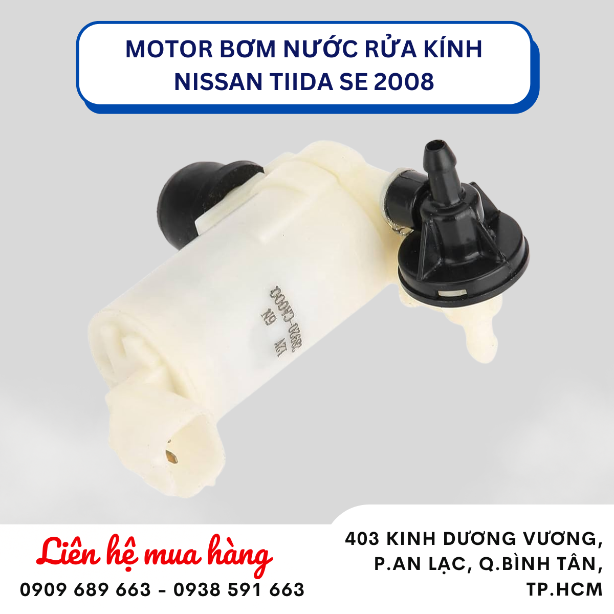 Motor bơm nước rửa kính Nissan Tiida SE 2008 là phụ tùng chính hãng, có nhiệm vụ bơm dung dịch rửa kính từ bình chứa lên vòi phun, giúp làm sạch kính lái, đảm bảo tầm nhìn an toàn khi di chuyển trong điều kiện mưa, bụi bẩn hoặc đường xấu.